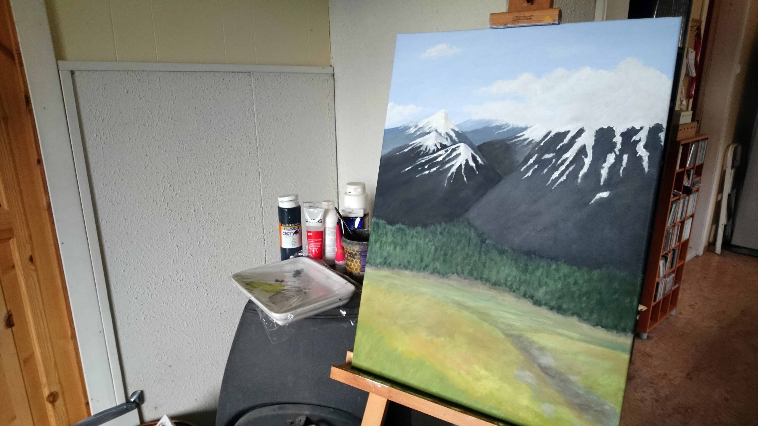 I used images from a Norwegian mountain range with the same name as inspiration. This is probably the painting I’ve used the most time on so far. It took several layers to get it where I wanted it.